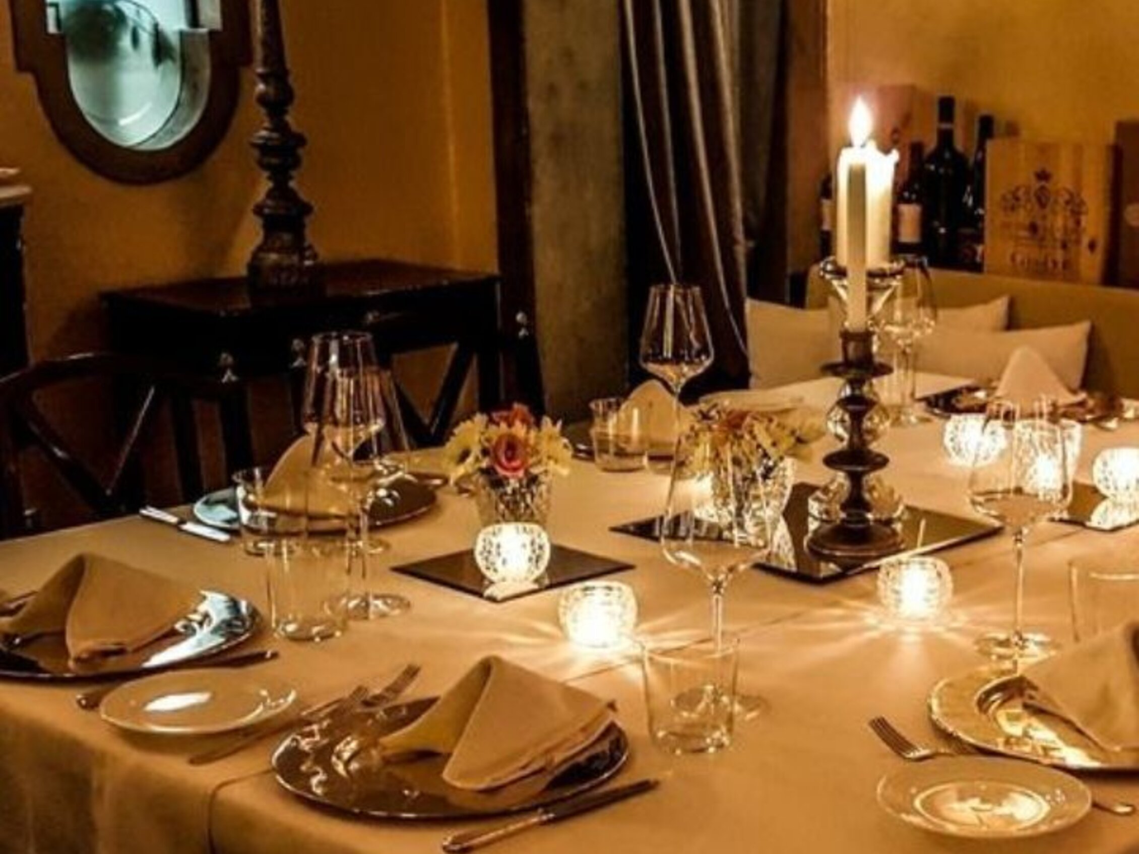 Located in the historic heart of Padua, within Palazzo Prosdocimi, the restaurant offers a romantic and refined Belle Époque setting, featuring soft lighting, pastel tones, and floral decorations. The dishes present reinterpretations of Venetian tradition with original pairings, accompanied by background music and attentive service.